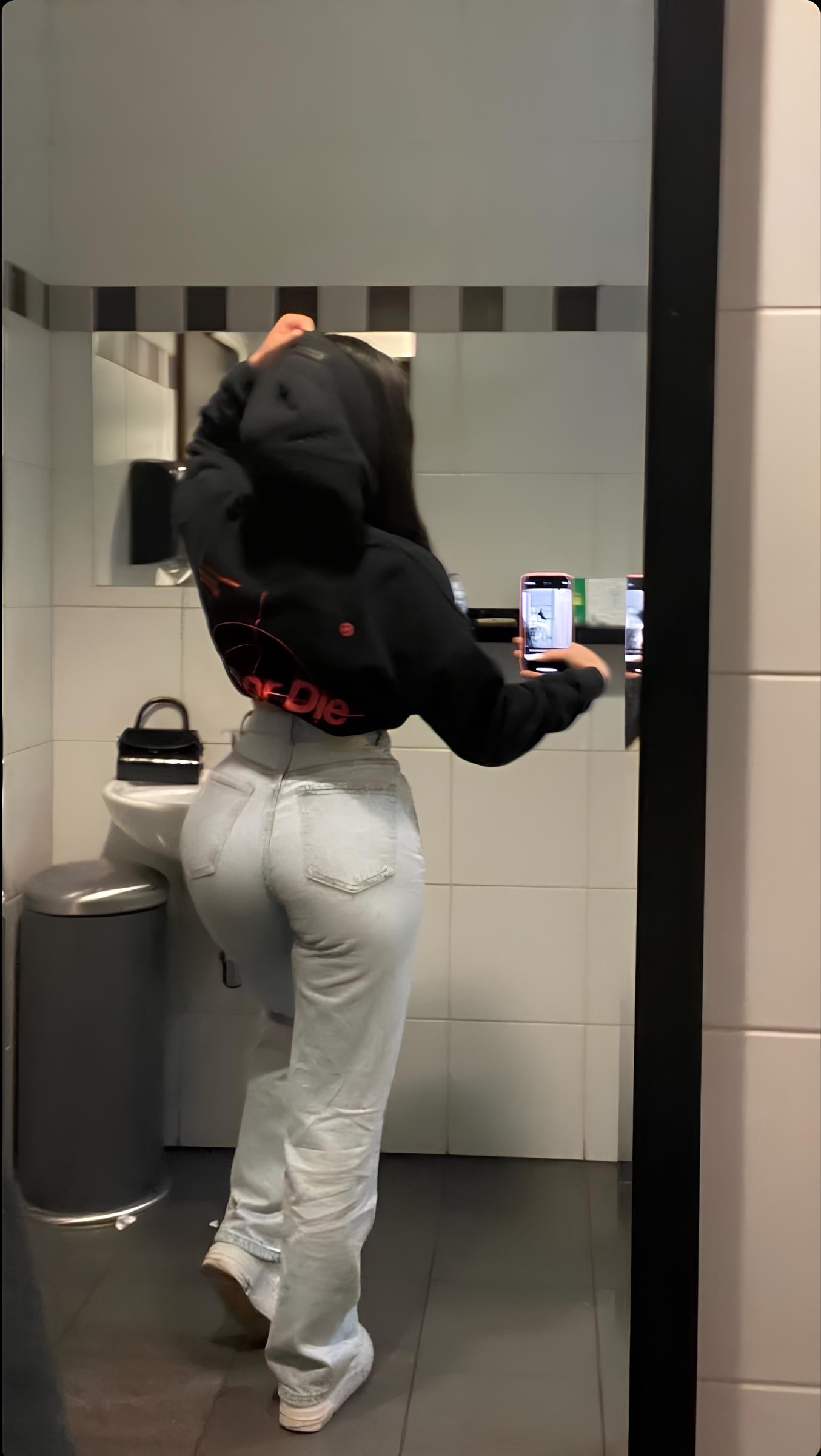 Maintenant je comprends l'engouement 😭 ça galbe vraiment les fesses, je n'ai jamais eu cet effet avec d'autres jeans. J'ai dû filmer de dos pour vous le montrer.
